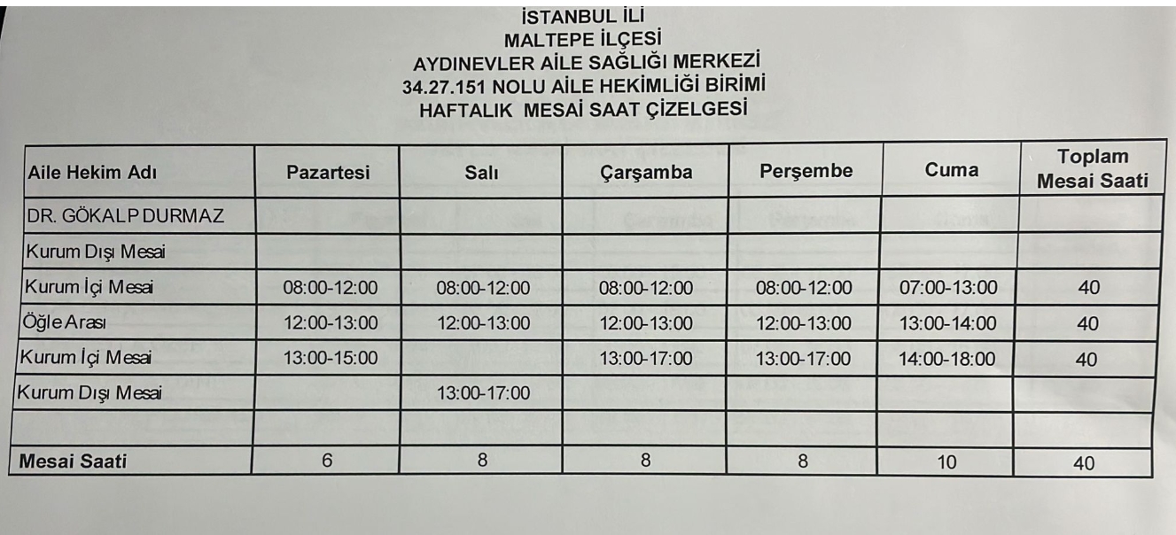 Çalışma Saatlerimiz